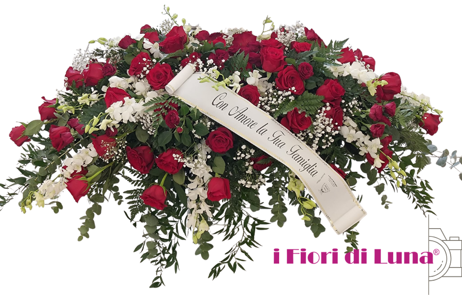 Realizzato artigianalmente dai fioristi di i Fiori di Luna, questo copricassa floreale funebre si distingue per la cura dei dettagli, la qualità dei fiori freschi utilizzati e la struttura studiata per garantire una presenza importante ma elegante sul feretro. La dimensione medio–extra lo rende particolarmente adatto a funerali solenni e cerimonie di commiato di rilievo.