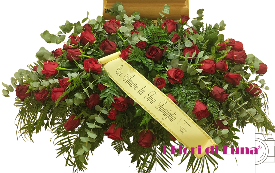 Il copricassa è completabile con nastro funebre personalizzato e dedica, per esprimere un messaggio di cordoglio sincero e partecipazione profonda da parte della famiglia o dei congiunti.